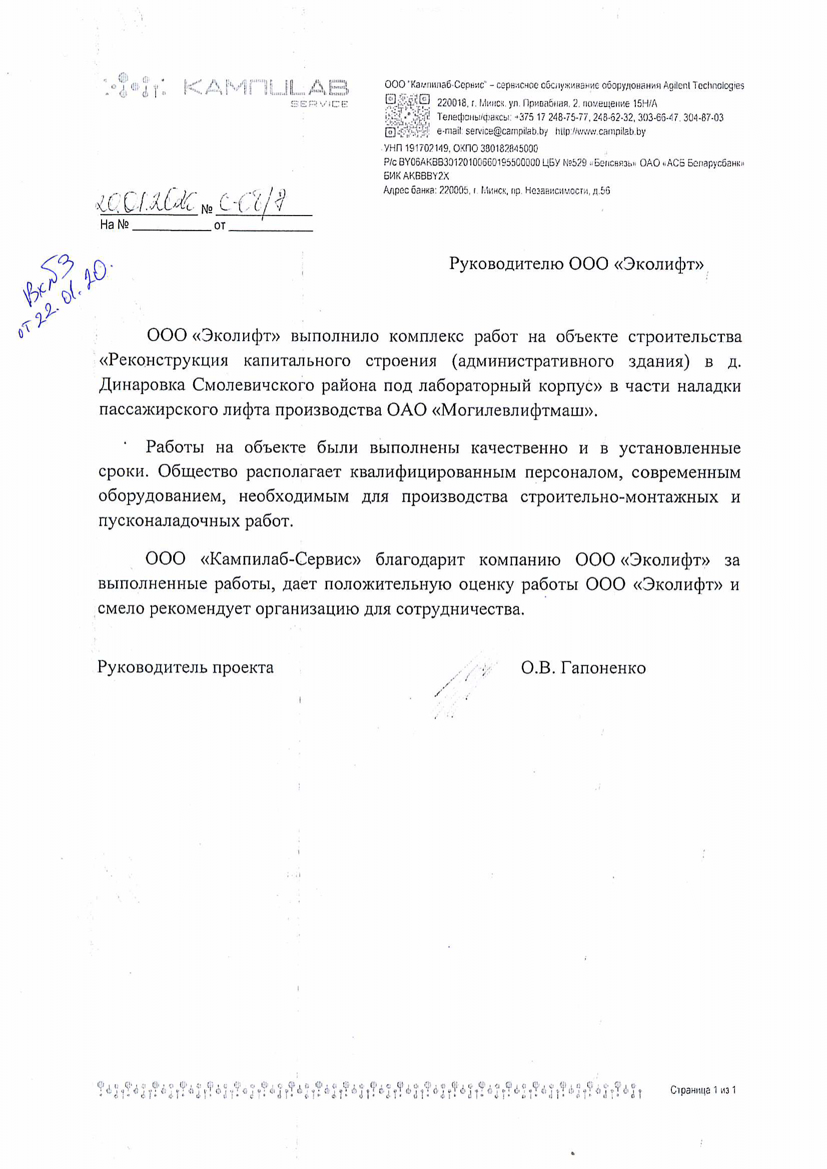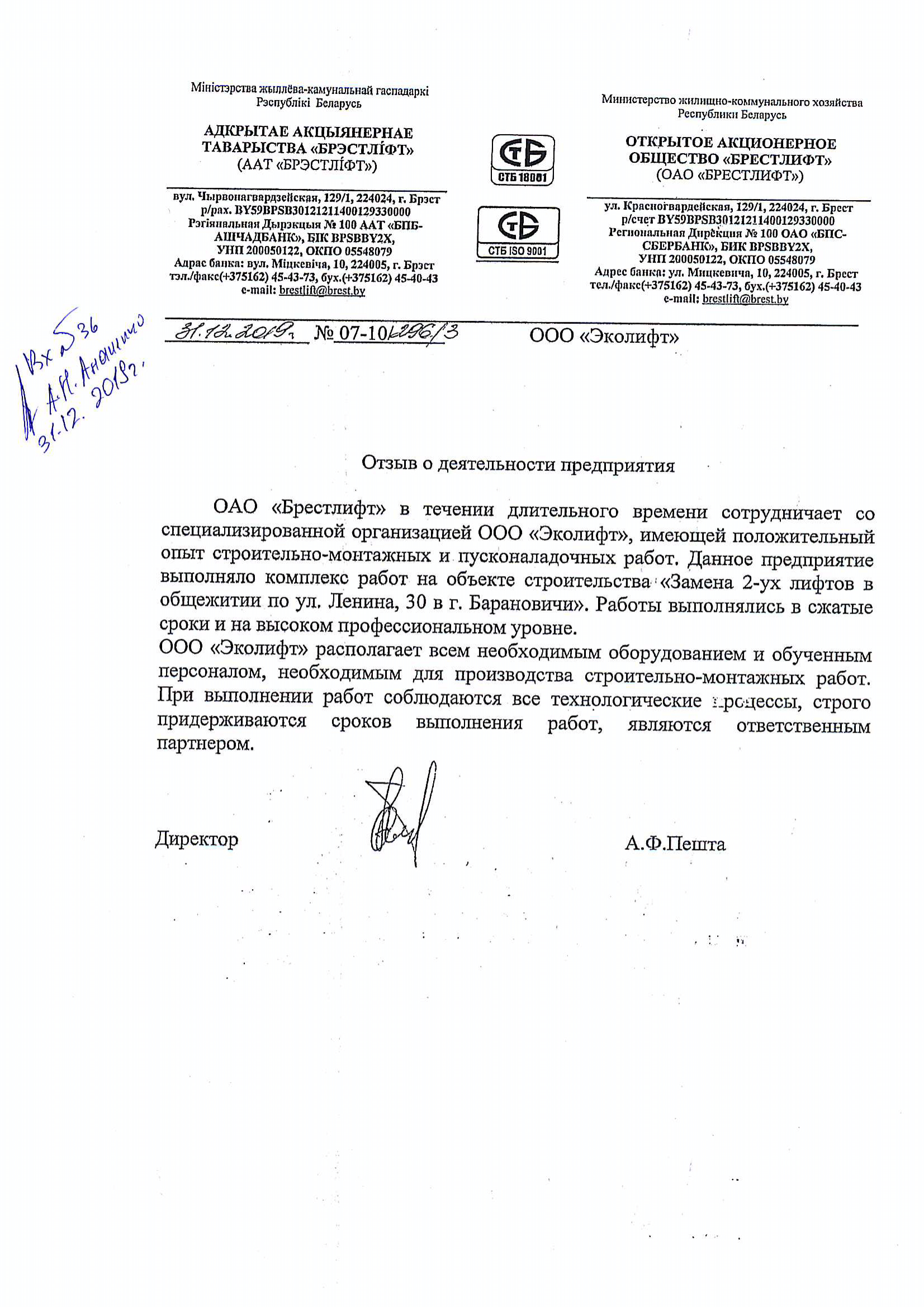 Общество с ограниченной ответственностью "ЭкоЛифт" было основано в 2003 году.